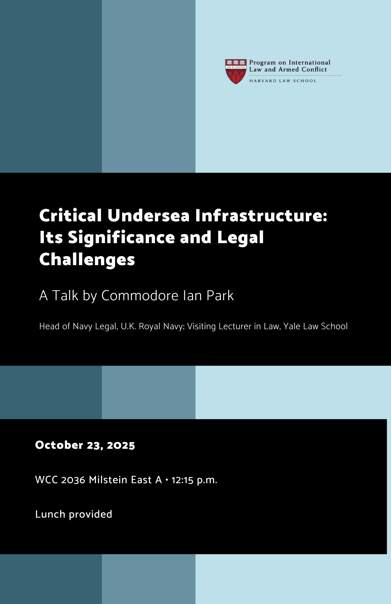 The world is dependent on critical undersea infrastructure (CUI) in the form of fibre-optic cables and oil and gas pipelines. Without it, communication would be impossible and many nations would not be able to satisfy their energy needs. Yet CUI is notably vulnerable to attack and has been targeted by states and non-state actors in recent years. Many legal issues in respect of defending CUI remain unresolved, and in this talk Ian Park will identify and address salient legal challenges.