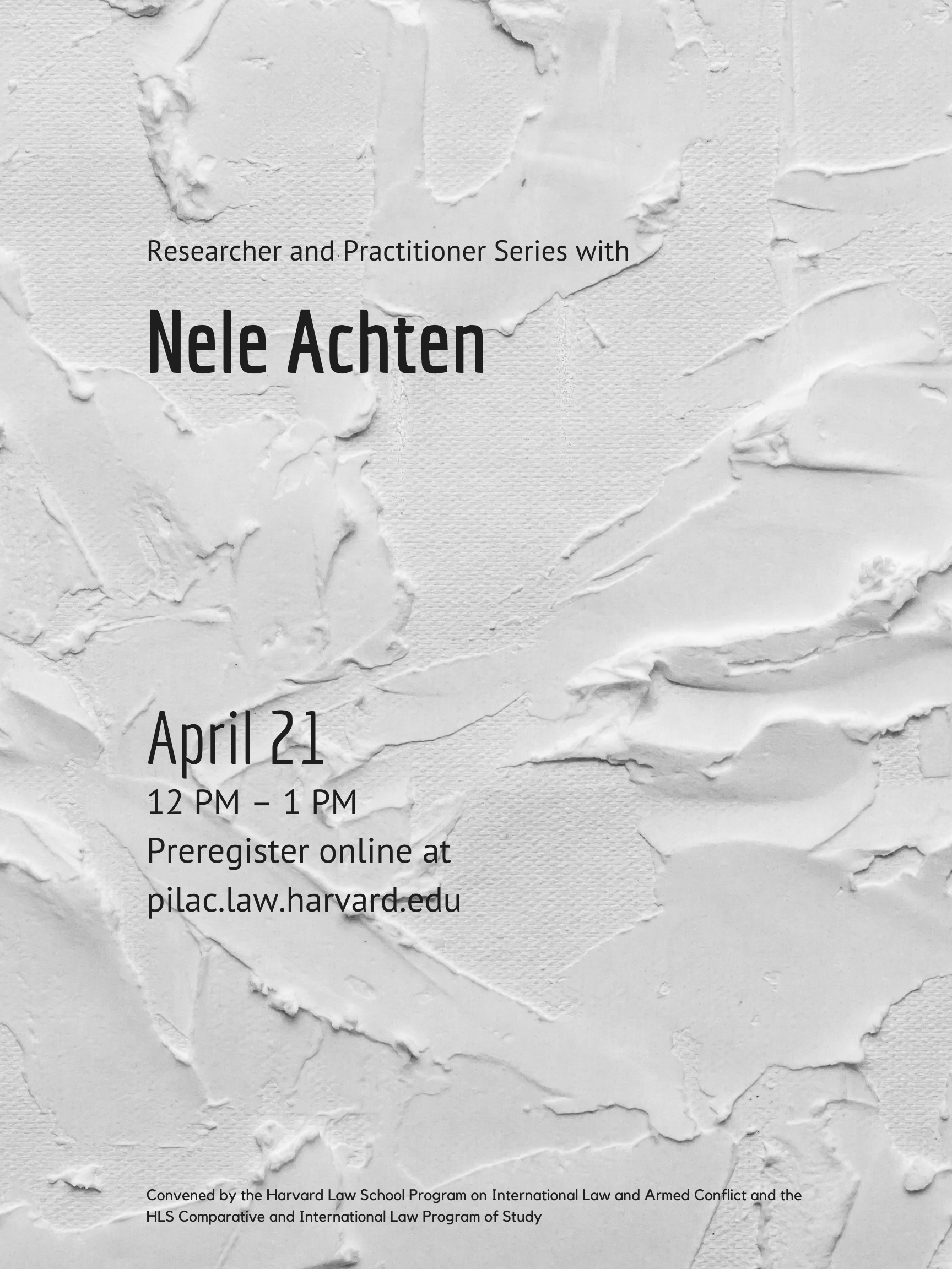 April 21, 2021 from noon to 1 PM Eastern on Zoom. This event is open to current HLS students only.
